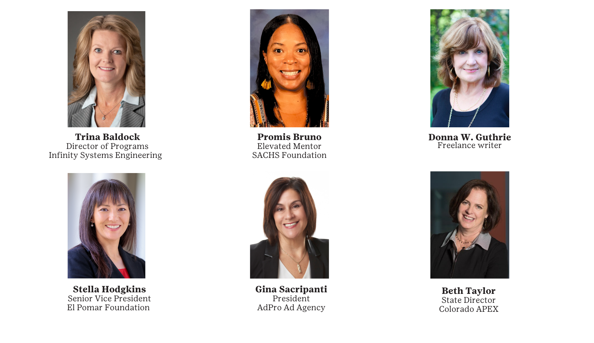 Each year, Girl Scouts of Colorado honors several outstanding women in the Pikes Peak region to induct as the new class of Women of Distinction. These women have displayed exemplary leadership and commitment to advancing the profile of women and girls in our community. They serve as inspirations to Girl Scouts and exemplify the courage, confidence and character of the Girl Scout Leadership Experience.